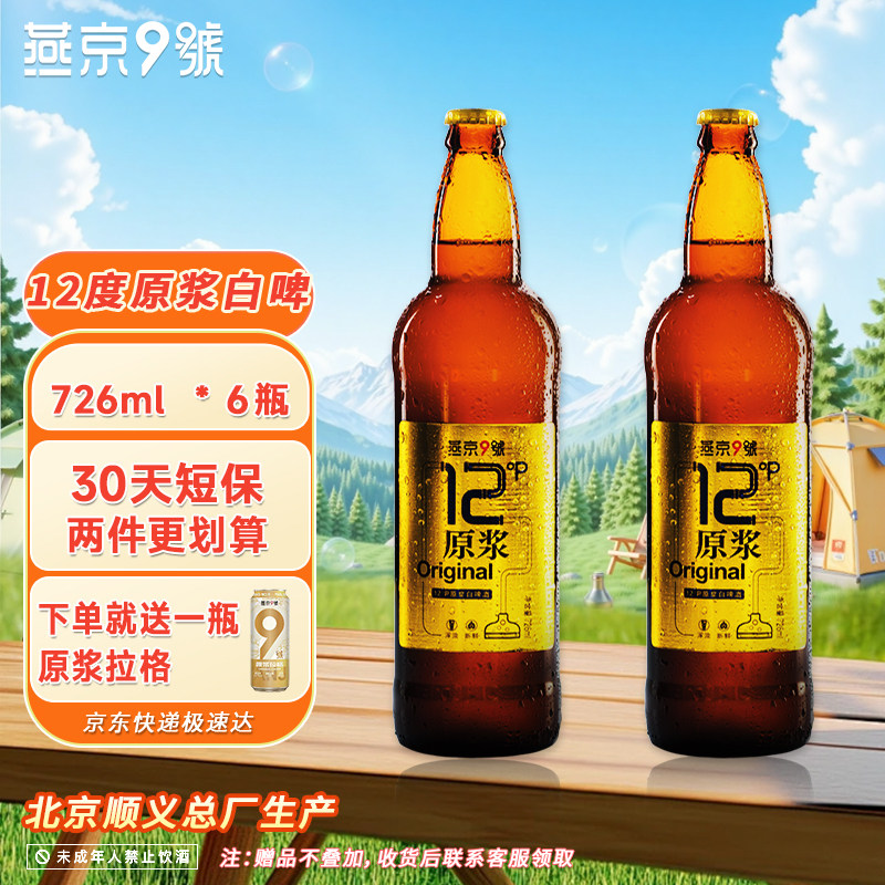 关晓彤推荐燕京9号原浆白啤726ml*6/9瓶整箱装燕京啤酒官方旗舰店