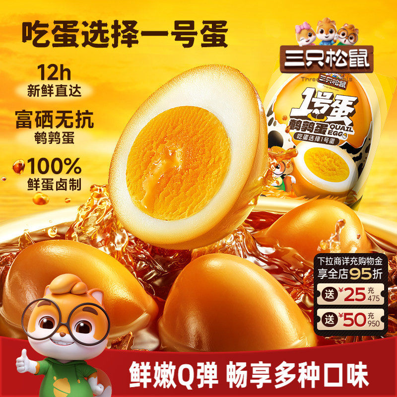 -> 三只松鼠_鹌鹑蛋多口味熟食零食大礼包小吃富含硒卤蛋小包装熟食