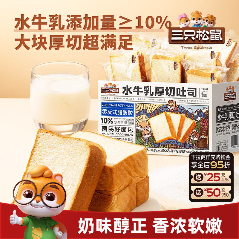 -> 三只松鼠_水牛乳厚切吐司1000g 面包营养饱腹早餐切片整箱