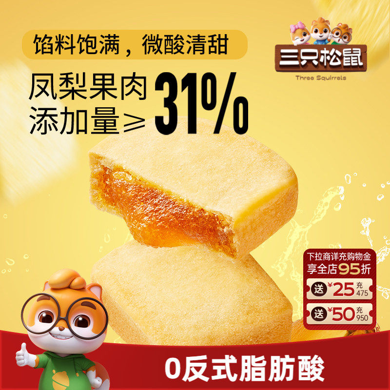 -> 三只松鼠_凤梨酥特产传统糕点零食早餐休闲厚切菠萝馅下午茶美食