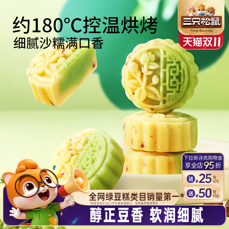 -> 三只松鼠_蔓越莓豆沙糕蛋黄酥组合绿豆糕点心整箱休闲零食下午茶
