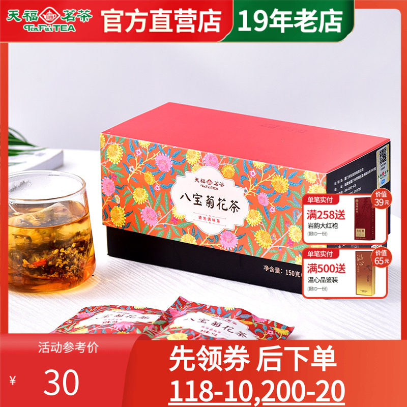 天福茗茶八宝菊花袋泡茶杭白菊桂圆红茶 蜜桃乌龙茶 陈皮白茶