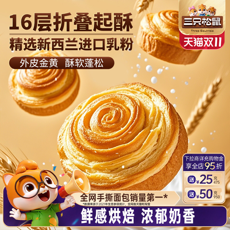 三只松鼠_手撕面包1kg早餐蛋糕点心健康吐司休闲食品饱腹零食代餐