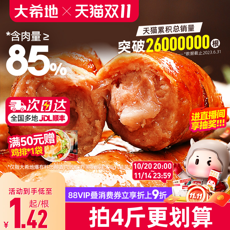 -> 大希地火山石烤肠台湾纯风味热狗脆皮黑胡椒肉肠香肠空气炸锅食材