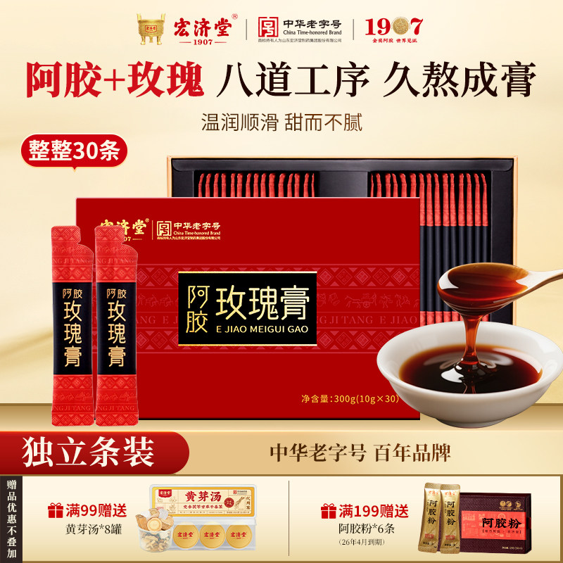 宏济堂阿胶玫瑰膏300g气色女补即食送婆妈父母长辈养生膏礼品盒装