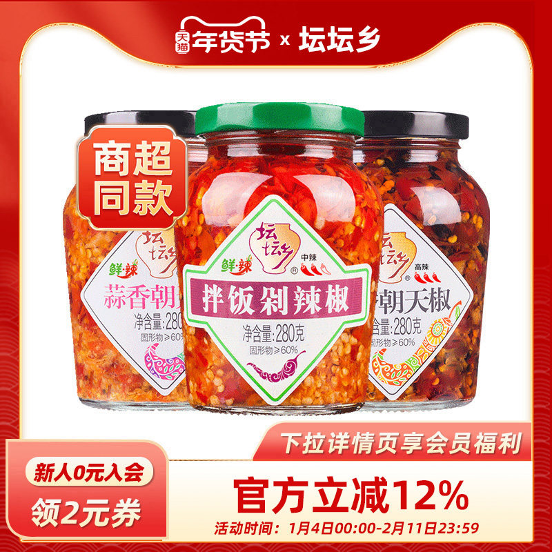 -> 坛坛乡豉香蒜香朝天椒拌饭剁辣椒280g*3组合湖南农家特产辣椒酱