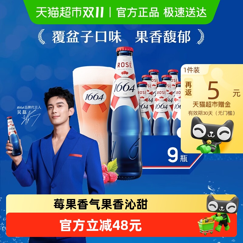 【详情页领淘金币专属补贴】1664啤酒桃红果味啤酒覆盆子味啤酒箱