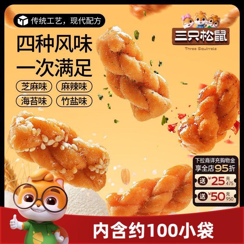三只松鼠_麻花量贩装香酥小麻花混合味整箱办公室休闲零食糕点