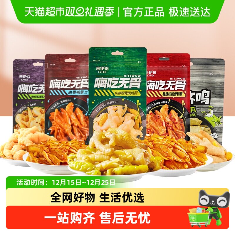 -> 来伊份嗨吃无骨凤爪山椒味去骨鸭掌泡椒鸡爪脱骨鸭爪休闲零食