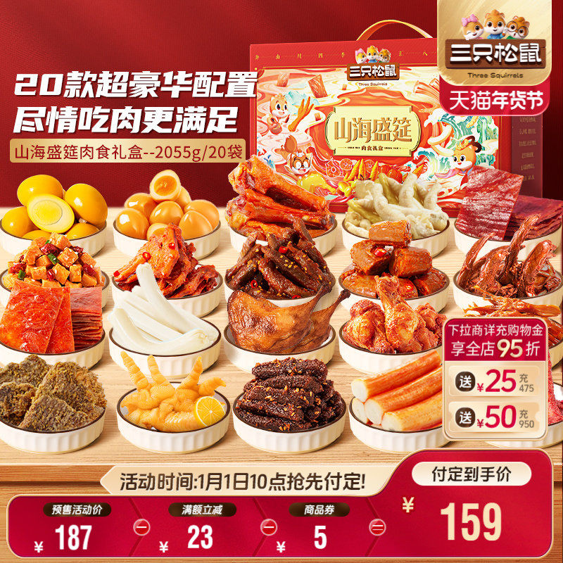 -> 【年货节预售】三只松鼠_山海盛筵肉食礼盒牛肉粒鸡爪零食送礼