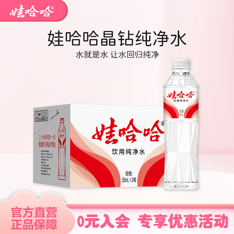 娃哈哈纯净水饮用水定制版晶钻水550mL*24瓶官方旗舰店正品整箱装