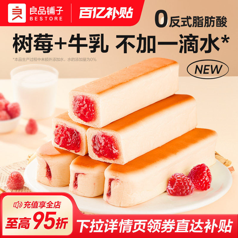 -> 良品铺子树莓牛乳面包棒手撕夹心小面包早餐营养代餐零食整箱500g