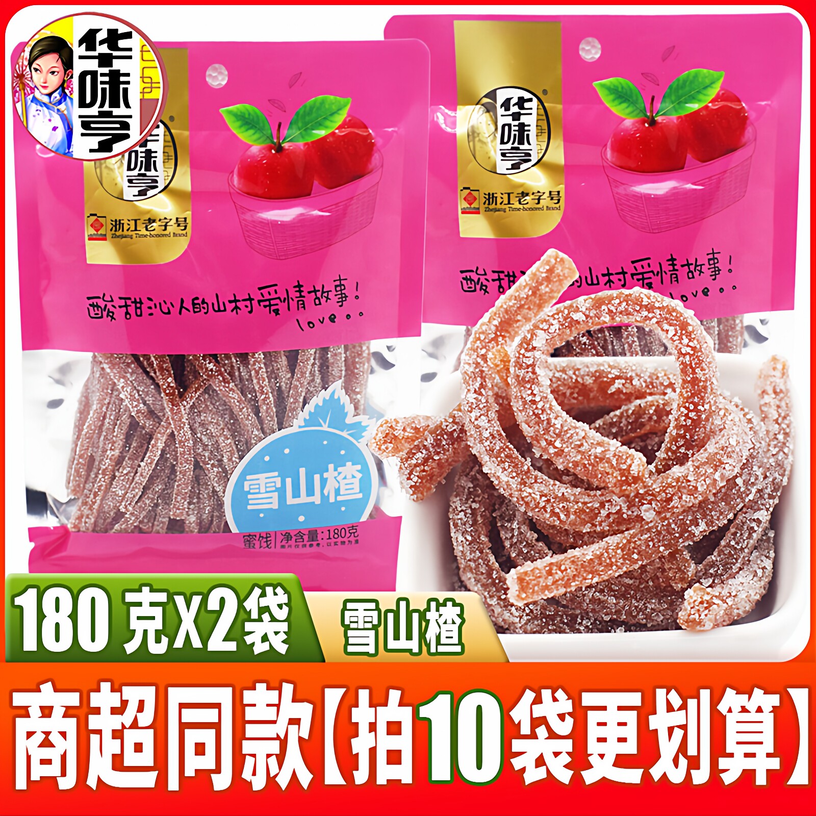华味亨雪山楂180g*2袋山楂丝酸甜开胃果糕类蜜饯办公休闲儿童零食