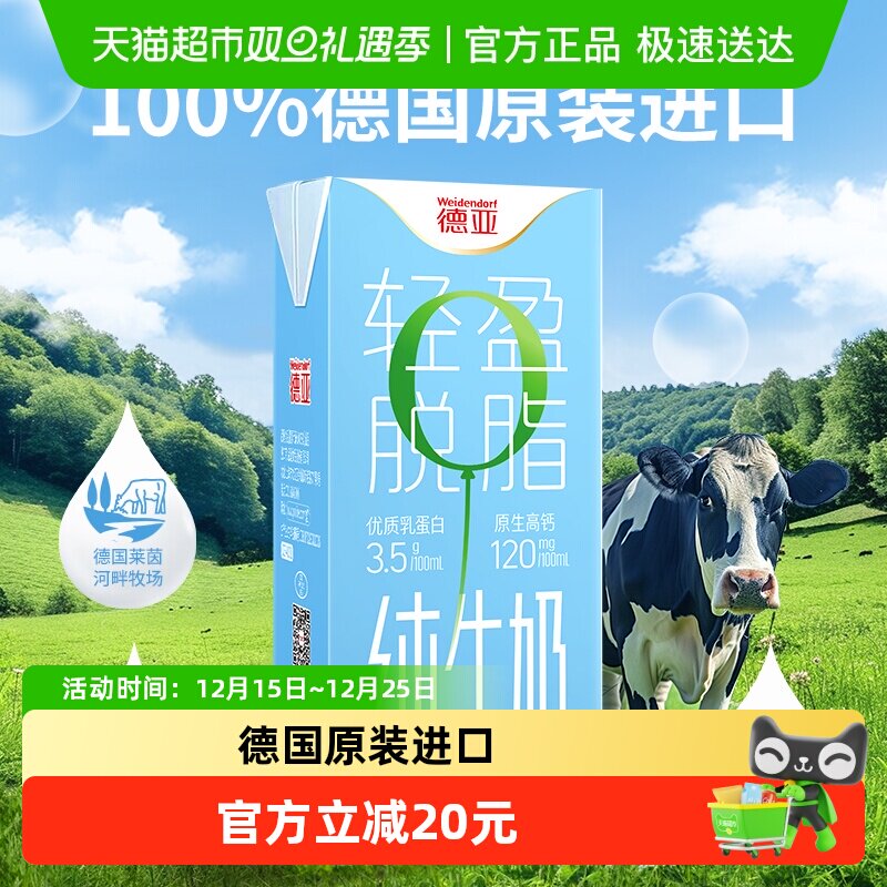 -> 【进口】德国德亚脱脂纯牛奶 健身0脂肪营养早餐牛奶 小脱箱装