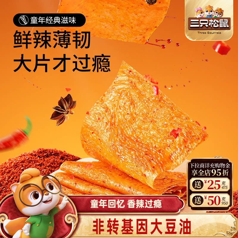 -> 三只松鼠BIG大辣片香辣味68g手撕辣条豆腐干豆皮童年零食