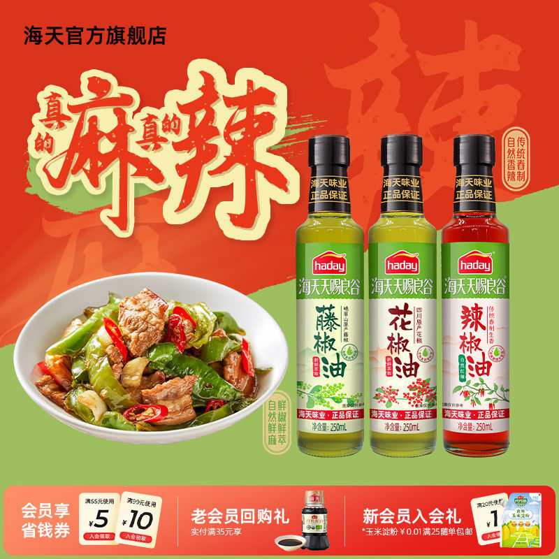 -> 海天天赐良谷花椒油藤椒油辣椒油特麻特香非转基因菜籽油调和油