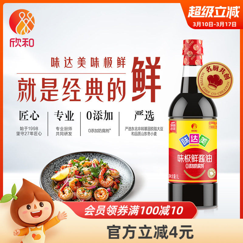 -> 欣和味达美1L味极鲜酱油生抽炒菜凉拌点蘸厨房调味品生抽家用调味