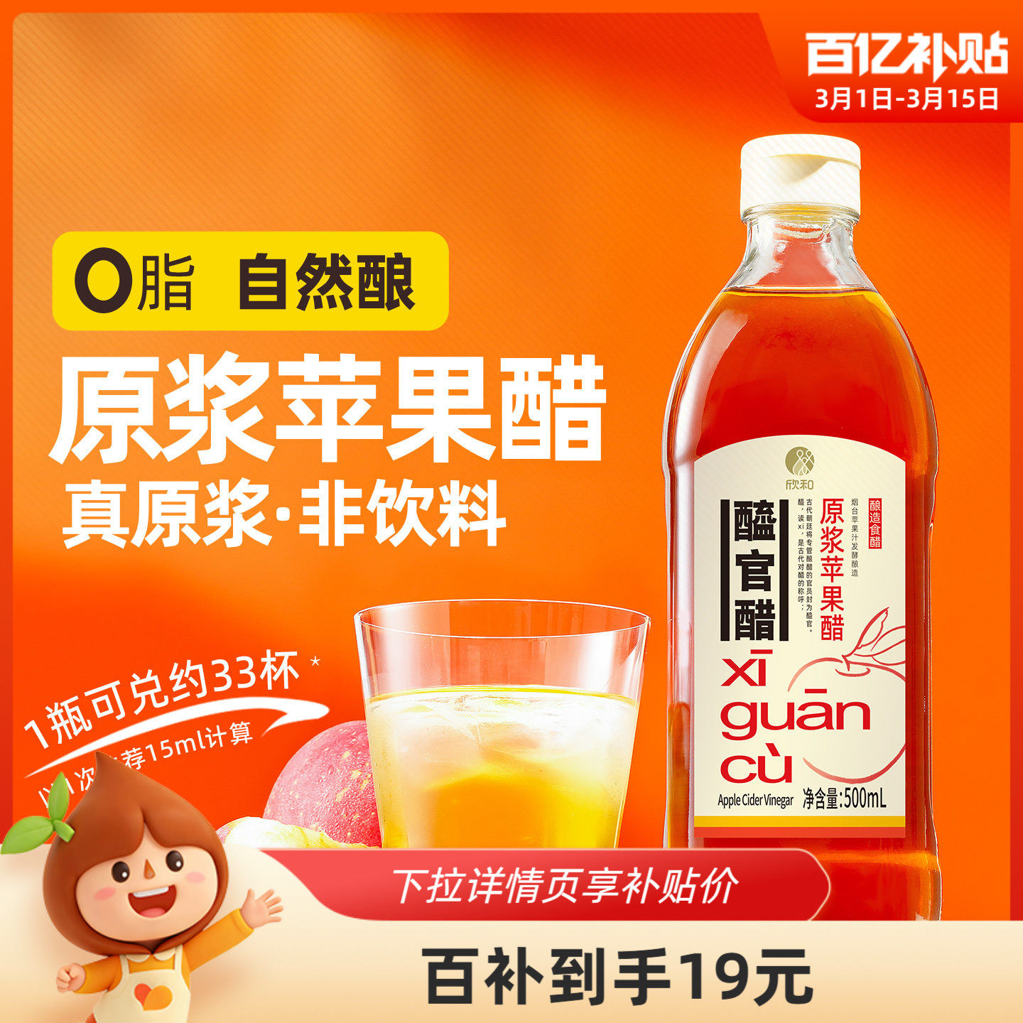 醯官醋原浆苹果醋500ml 欣和浓缩苹果汁和水酿造0脂肪0添加防腐剂