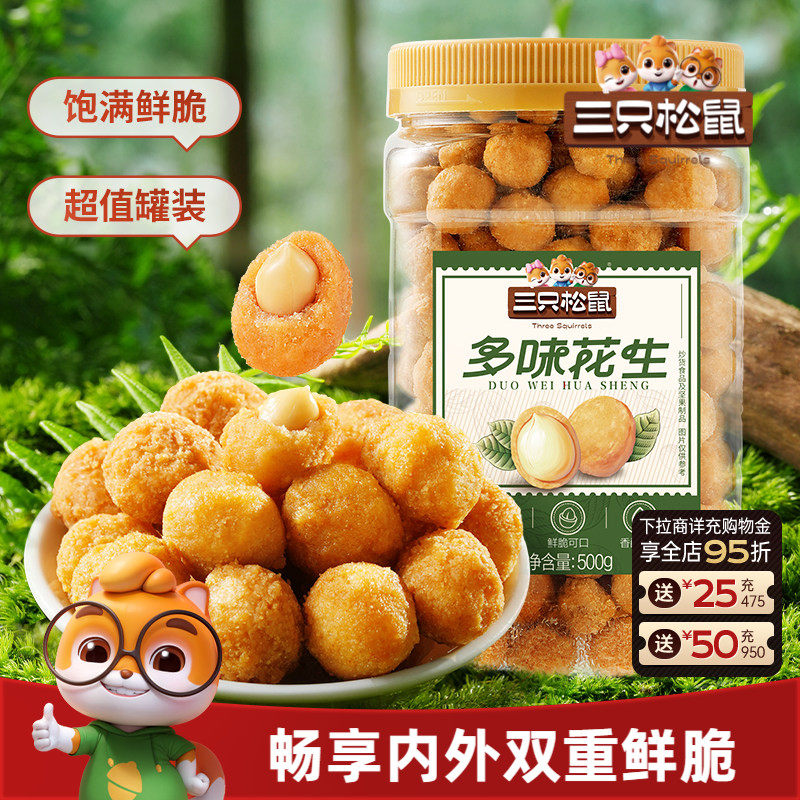 -> 【三只松鼠_罐装多味花生500g】花生米下酒菜炒货休闲零食小吃