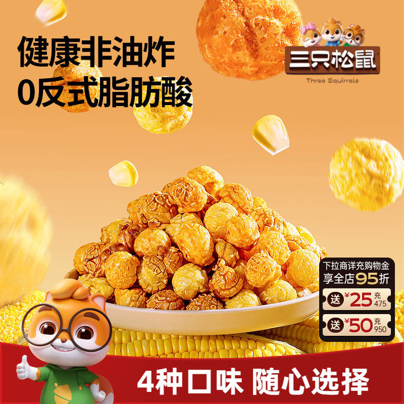 -> 三只松鼠爆米花40gx8袋奶油焦糖芝士味黄金玉米花解馋小吃