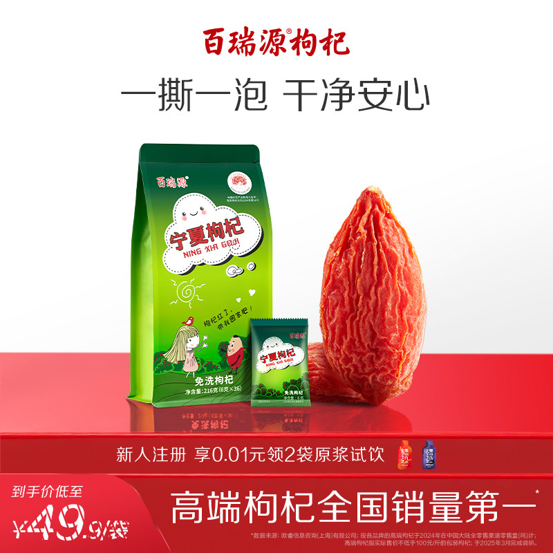 -> 百瑞源枸杞丨宁夏枸杞子216g宁夏中宁正宗特级优红杞干官方旗舰店