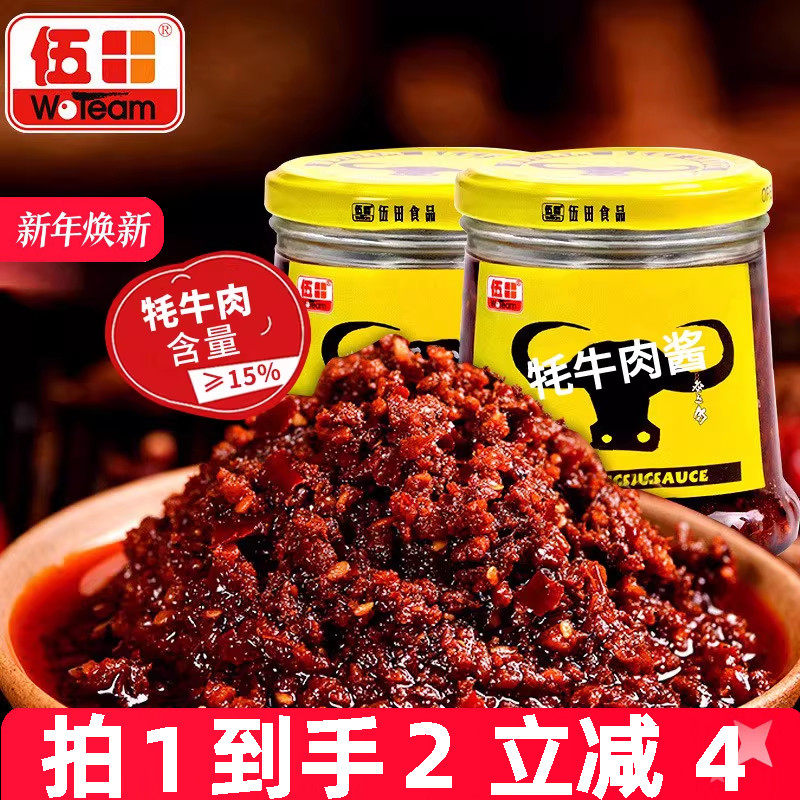 伍田牦牛肉酱230g*2瓶香辣酱牛肉拌面酱调料拌面牛肉酱家用商用