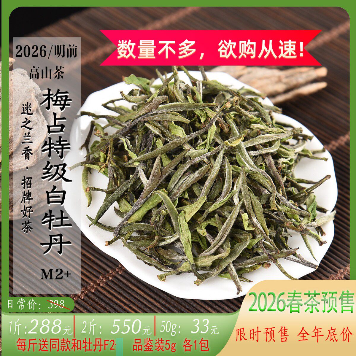 新茶2026/2025年高山梅占特级白牡丹M2+ 兰花香甜香政和白茶
