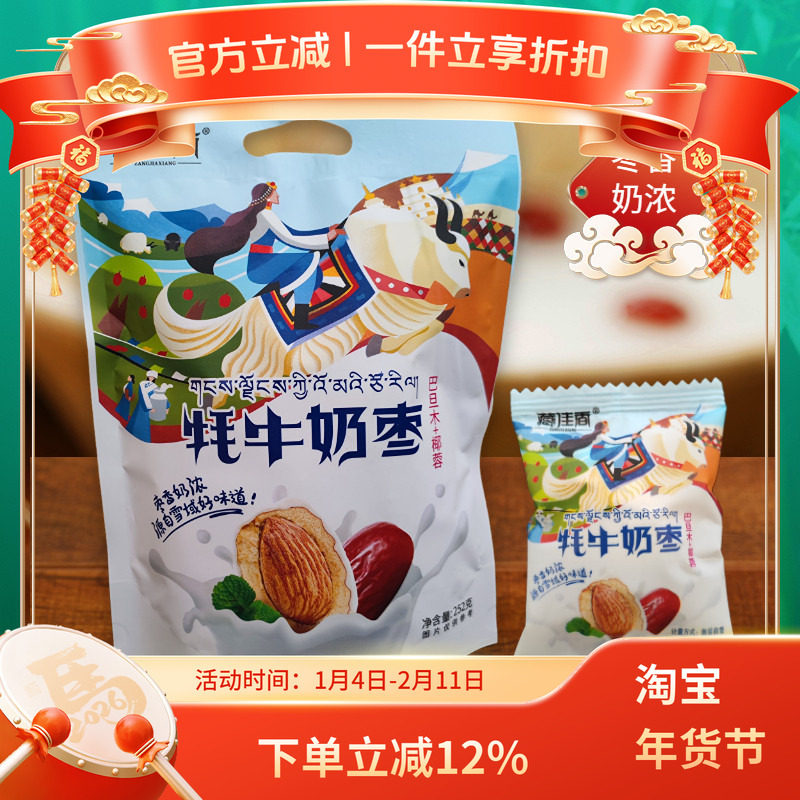 西藏特产藏佳香牦牛奶枣夹心奶枣巴旦木椰蓉杏仁混合干果奶酪包邮