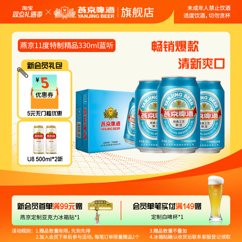 【燕京啤酒】U8优爽小度特酿啤酒500ml*12瓶*2箱整箱瓶装批发特价