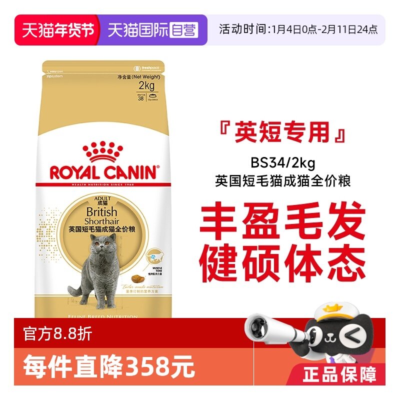 【自营】法国皇家英国短毛猫成猫全价粮BS34/2kg主粮金银渐层蓝猫