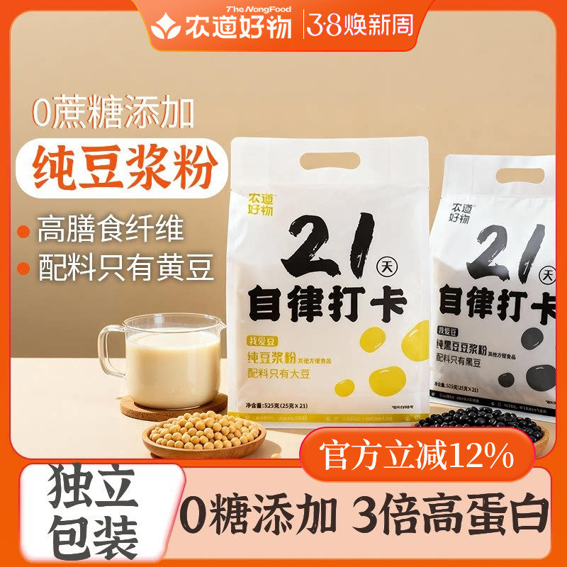 -> 农道好物21天自律打卡无糖精纯豆浆粉原味黄豆黑豆豆浆孕妇豆奶粉