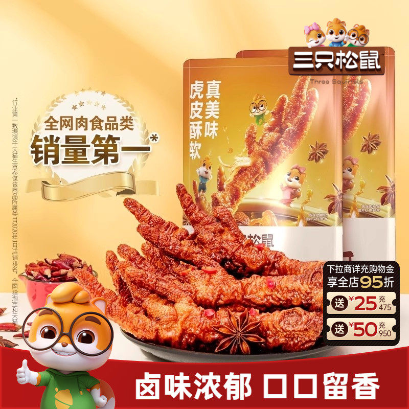 三只松鼠_虎皮凤爪香辣五香卤味鸡爪特产熟食夜宵解馋小零食小吃