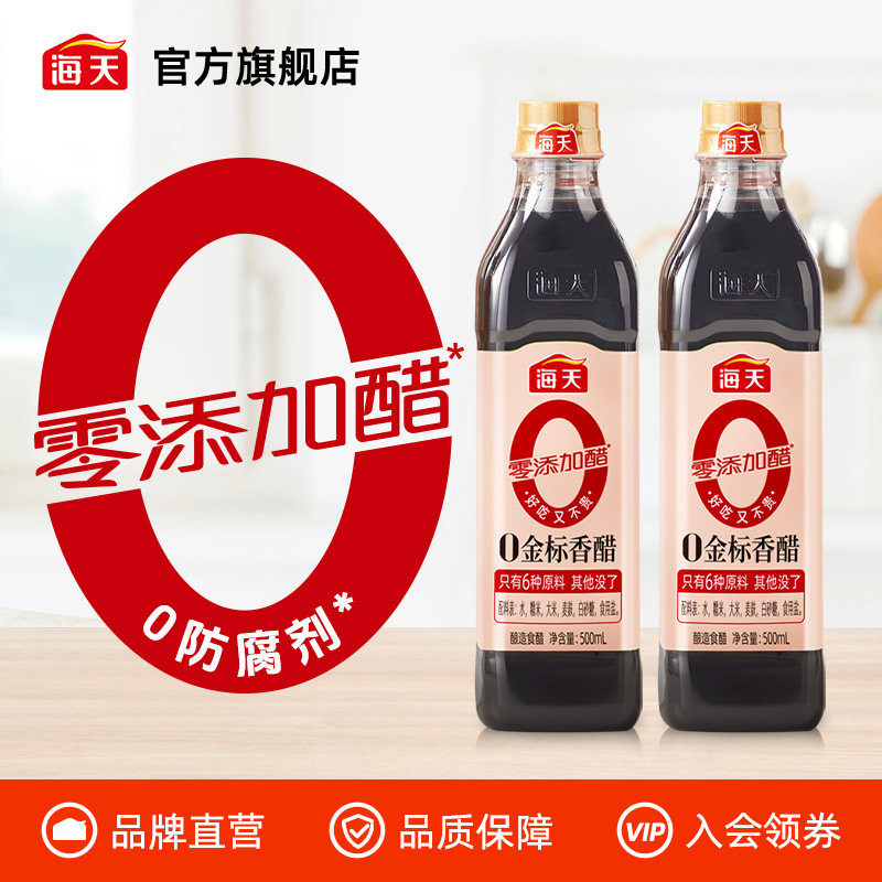 -> 海天零添加醋0金标香醋500ml*2家用凉拌谷物酿造食醋凉拌点蘸醋