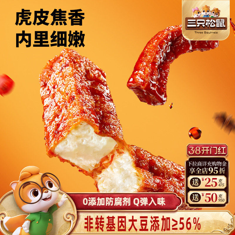 三只松鼠虎皮豆干120g香辣五香休闲解馋小零食即食豆腐干小吃