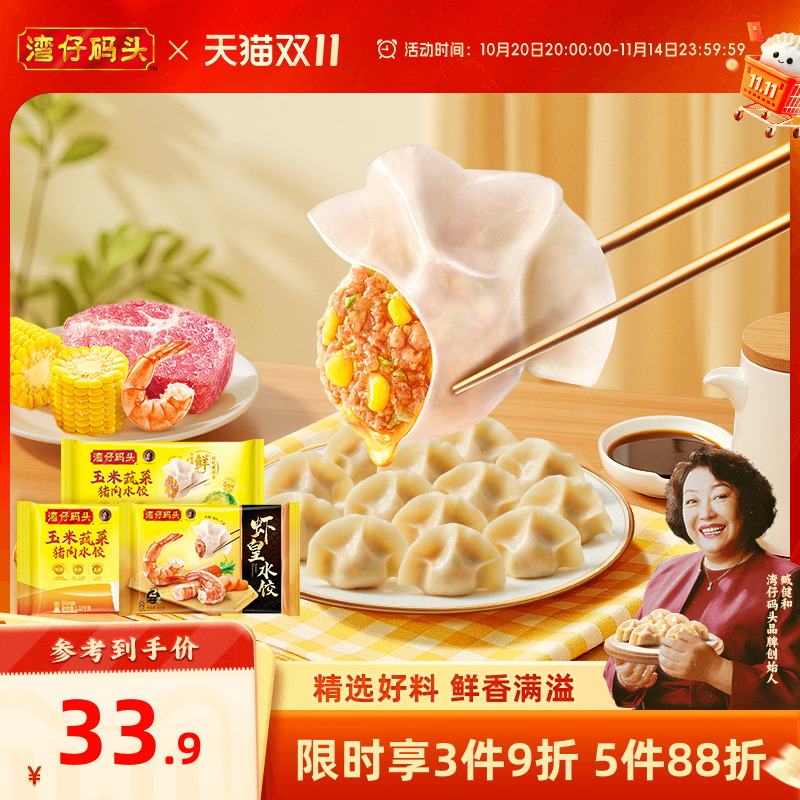 -> 湾仔码头玉米水饺大白菜三鲜韭菜猪肉饺子1320g蒸饺煎饺速食早餐