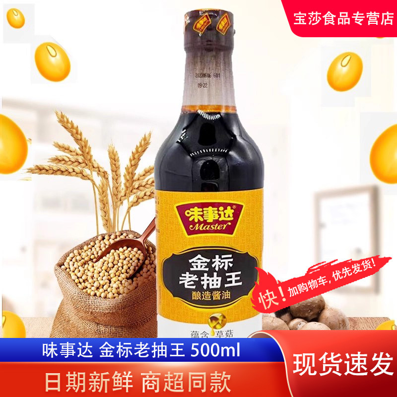味事达金标老抽王草菇500ml瓶老抽酱油黄豆酿造炒菜凉拌点蘸烹饪