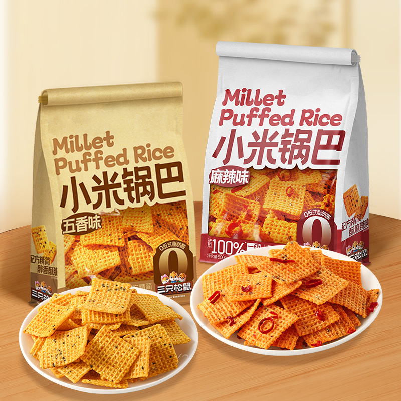 -> 三只松鼠小米锅巴500g五香麻辣味休闲解馋小零食酥脆