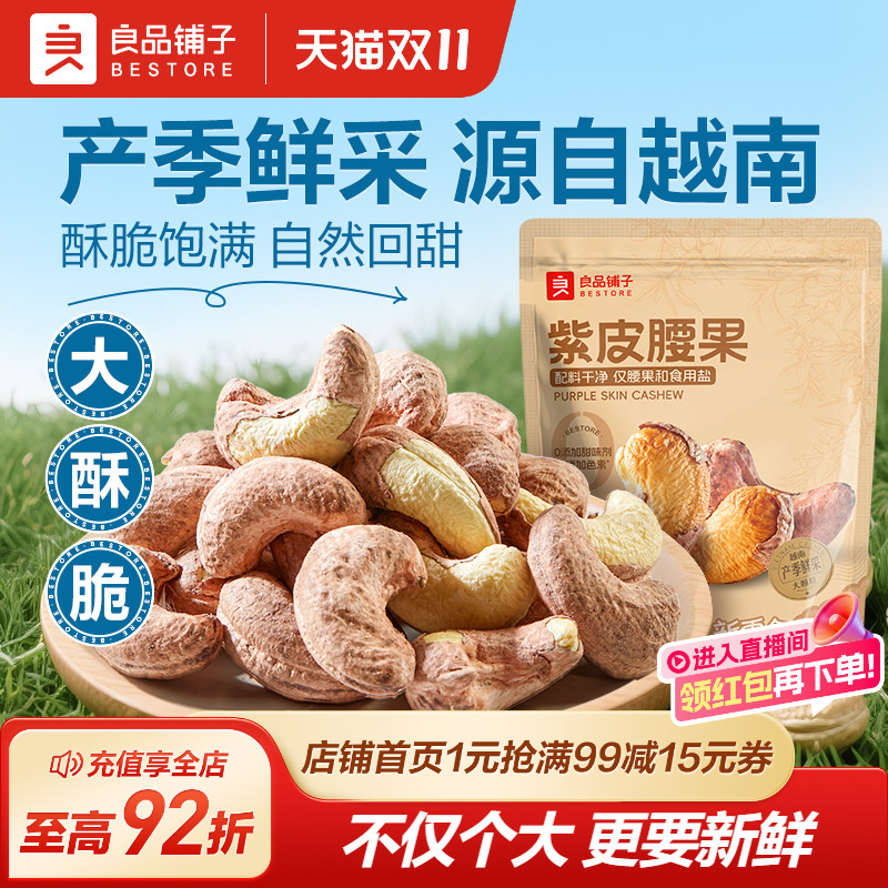 -> 良品铺子腰果2025年新货紫皮原味越南坚果腰果仁盐焗紫衣特大罐装
