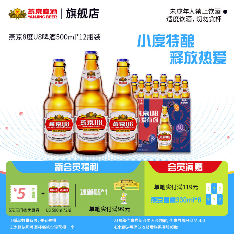 燕京啤酒 燕京U8小度特酿500ml*12瓶原酿 整箱 批发包邮 官方正品