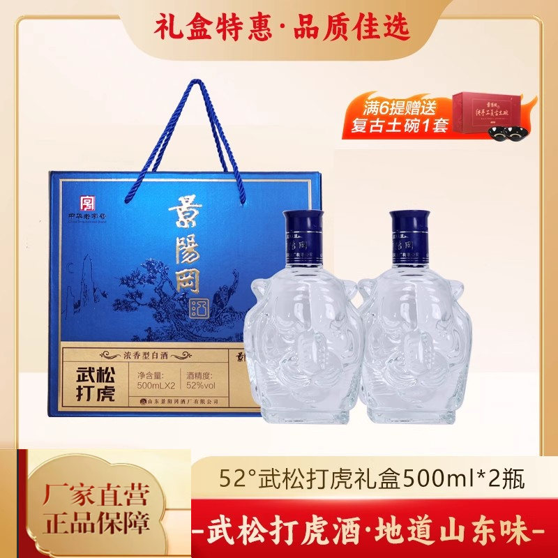 景阳冈透瓶38度52度白酒500ml纯粮食酿造浓香型景阳冈酒白酒整箱