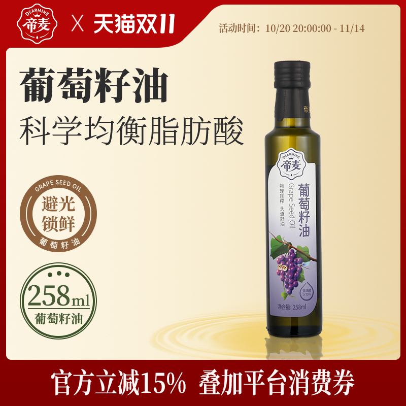 帝麦物理冷榨纯葡萄籽油258ml家用炒菜食用植物油煎炒烹炸少油烟