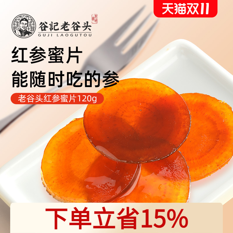-> 老谷头红参蜜片长白山特产人参整支红参切片泡蜂蜜即食泡水煲汤