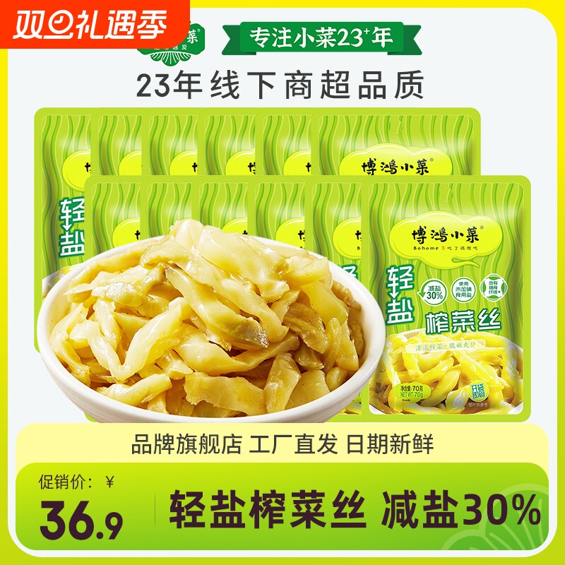 -> 博鸿小菜原味榨菜70g*15包余姚榨菜丝清淡口味下饭菜榨菜包邮