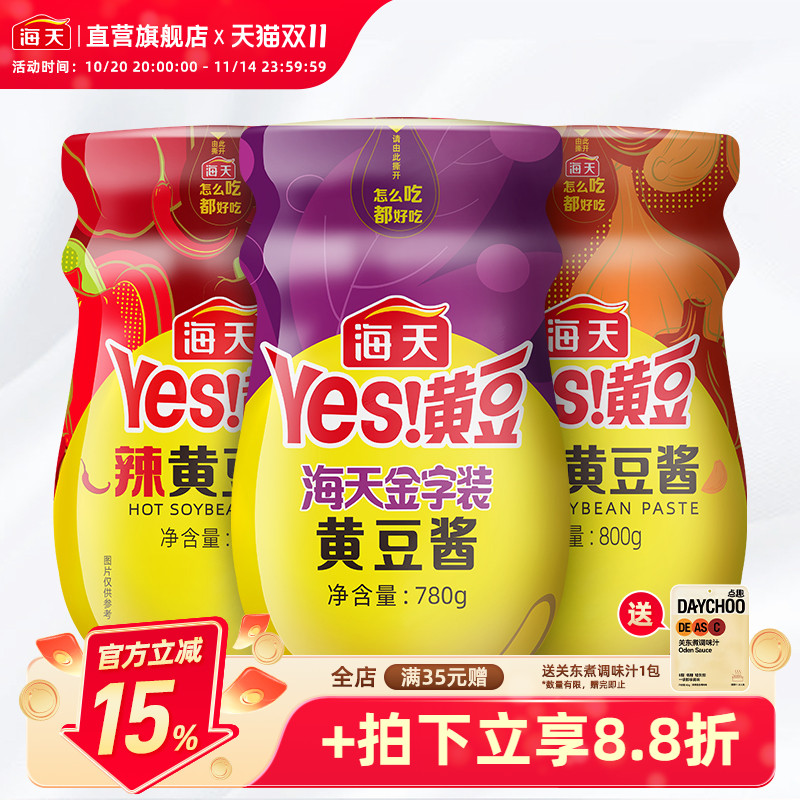 -> 海天金字装黄豆酱780g多口味规格家用拌饭拌面蘸料豆瓣东北大酱