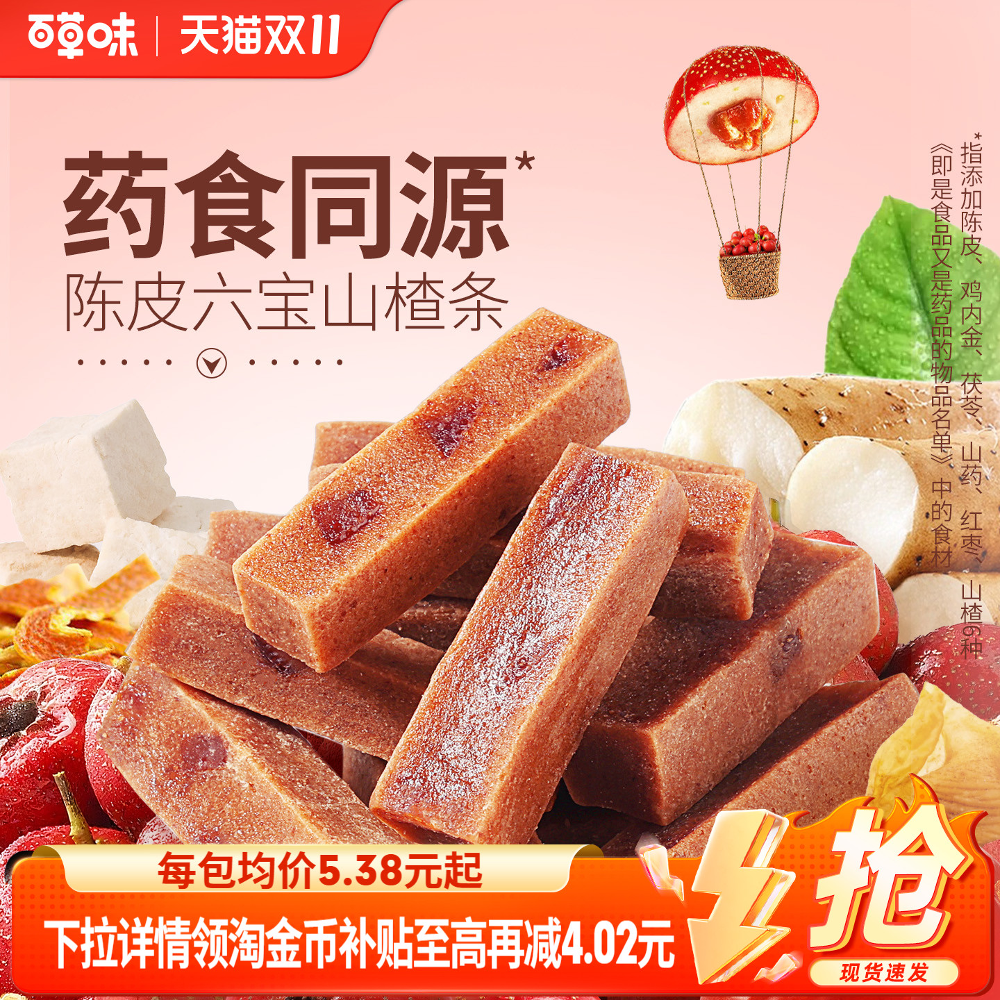 -> 百草味陈皮六宝山楂条108gx5袋山楂干片卷果丹皮蜜饯零食休闲食品
