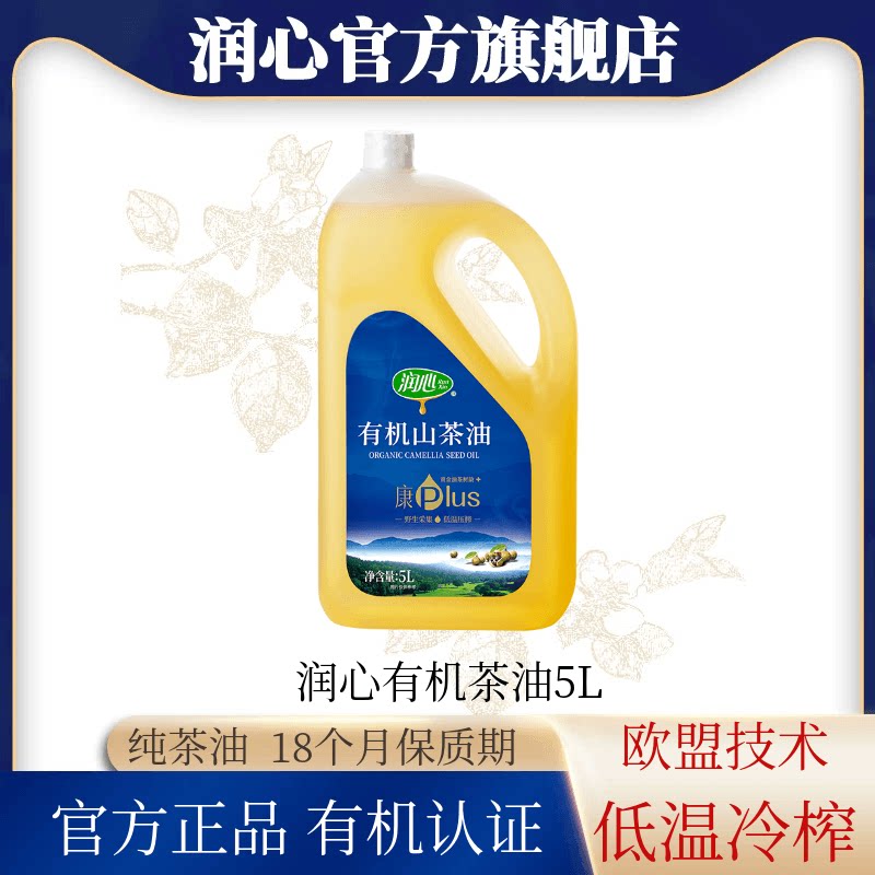 -> 【官方正品】【爆款】润心康plus有机山茶油5L低温压榨茶籽油清淡