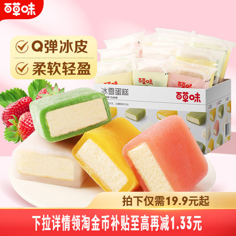 -> 百草味冰雪蛋糕540g麻薯整箱早餐面包充饥夜宵糕点小吃休闲食品