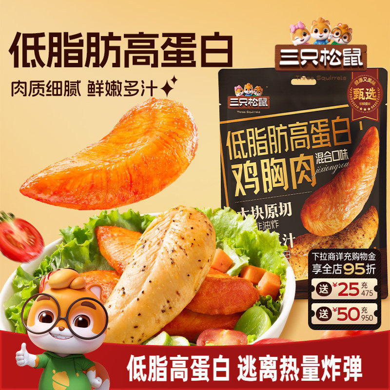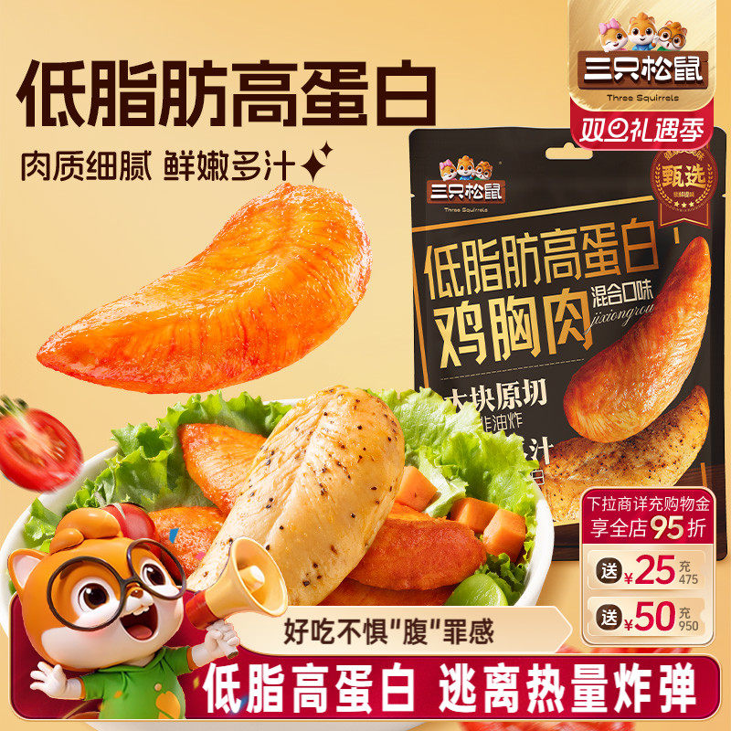 -> 三只松鼠_低脂高蛋白鸡胸肉解馋即食低脂代餐小零食小吃鸡肉熟食