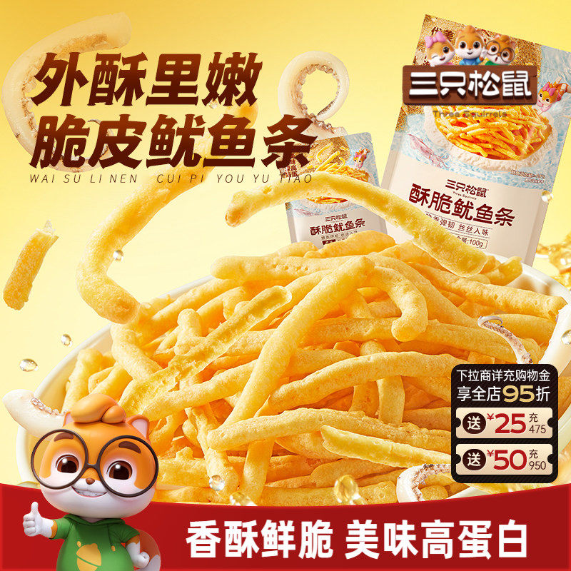 三只松鼠_酥脆鱿鱼条即食鱿鱼高蛋白独立小包装解馋海味零食小吃