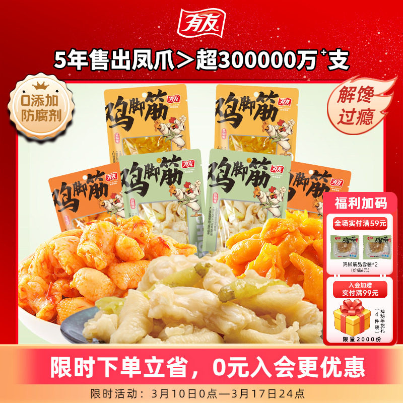 -> 有友 盐焗鸡脚筋山椒鸡爪筋泰式脱骨无骨脆骨网红追剧解馋零食R
